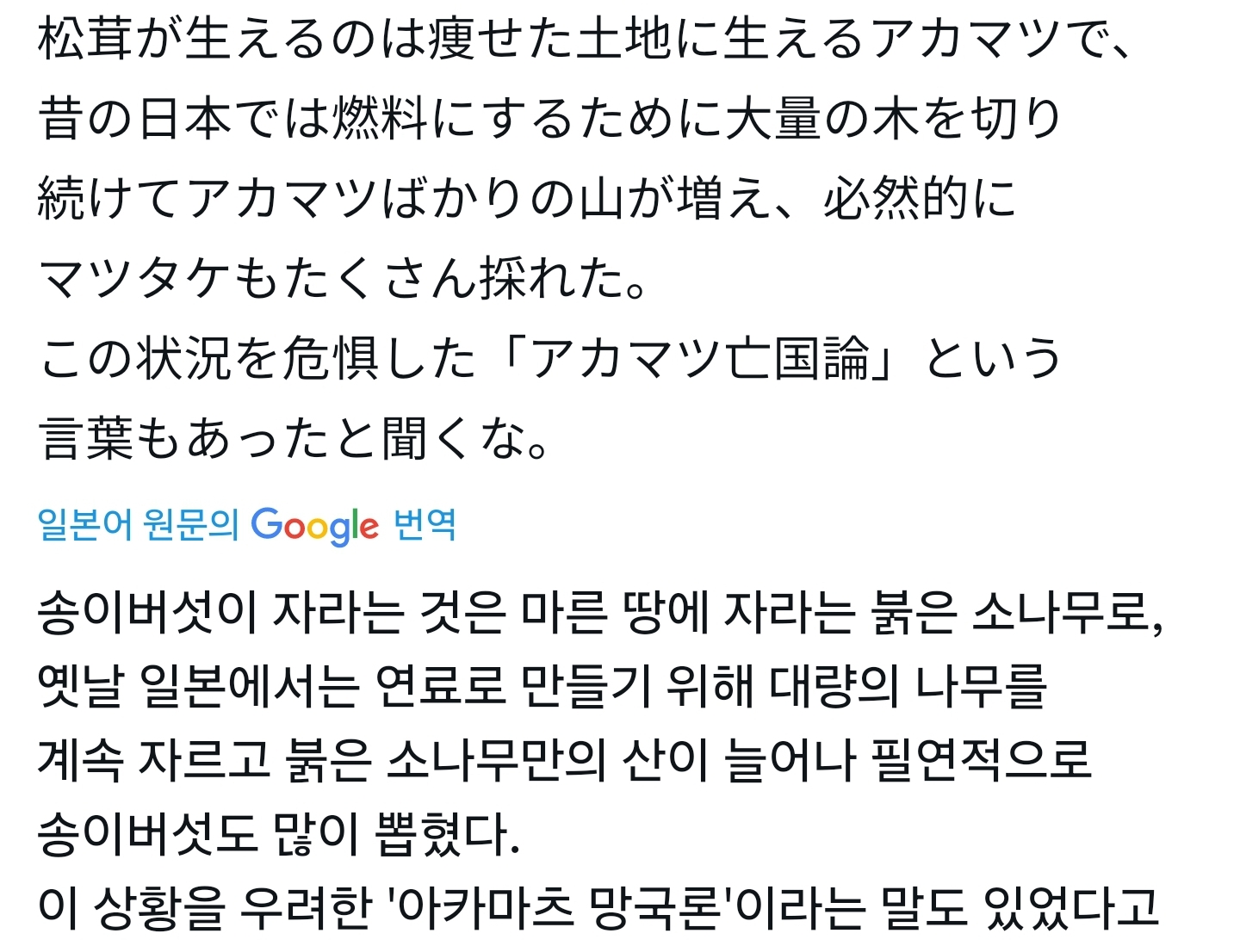 현대 일본에서 더 귀해진건 송이 버섯이 자랄 소나무가 많이 줄어들어서 그런거. | 25.01.16 07:42 | | |