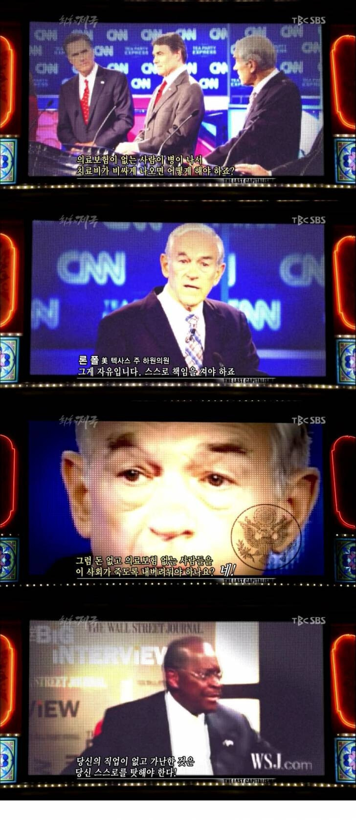 의료비가 그렇게 쌘데 그 돈이 다 어디로 가는지 신기한 국가 영화같은데에선 막 외계인 침공에 쇼미더머니 돈지랄 하는 모습은 잘 보여주면서 정작 자국민이 의료서비스로 죽어나가는건 터치도 못하는게 신기 심지어 정치인조차 영향받는데 손볼 생각도 안함