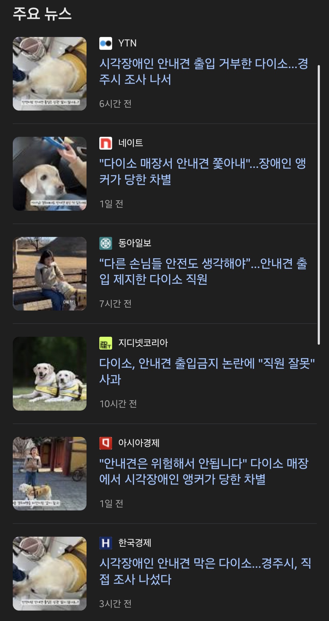 근데 타이밍이 안내견 입장 거부 영상 뜬 뒤로 바로 미담이...