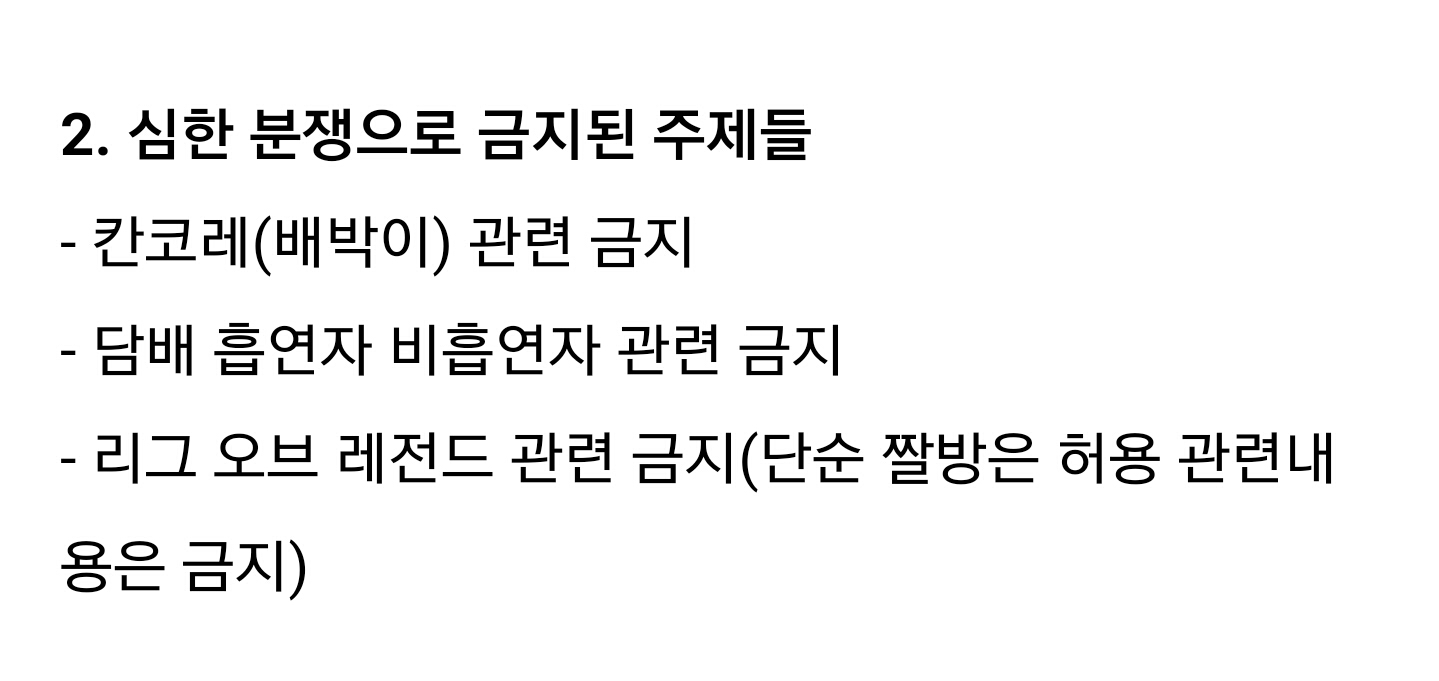 몇몇 특수문자도 금지엿음 그래서 정지 왜당하는지 모르는 경우가 잦앗음