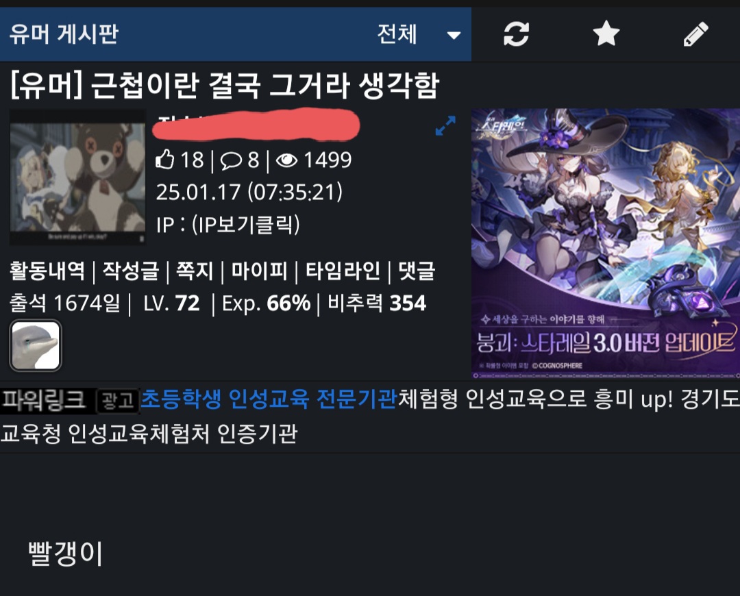 뻘하다는 단어를 처음 들어보는데도 이게 근첩 단어라는게 웃기네 ㅋㅋ | 25.01.17 07:59 | | |