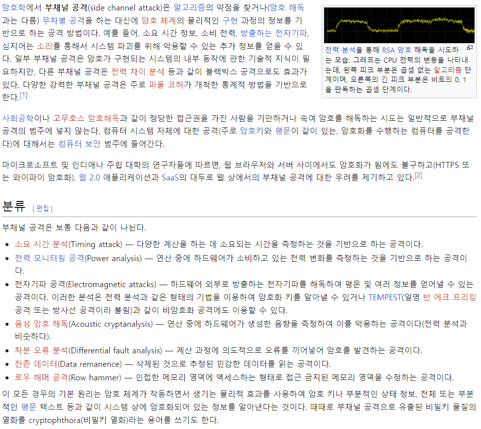 사실 엄밀한 의미의 물리적 해킹 기법은 부채널 공격과 같은 걸 말함. 이론상 사회공학적 해킹 기법 다음으로 강력한 공격방법인데, 전력 소모량 측정해보니까 비밀번호 q1w2e3r4! 이네 하고 관측하는 거. 정보보안 시험볼때 물리적 해킹이라고 하면 이런걸 뜻함 ㅋㅋ 공부할때 느꼈던건데 정상적인 암호 해독 알고리즘으로 분석하는 방법은 최약체더라 | 25.01.17 16:51 | | |