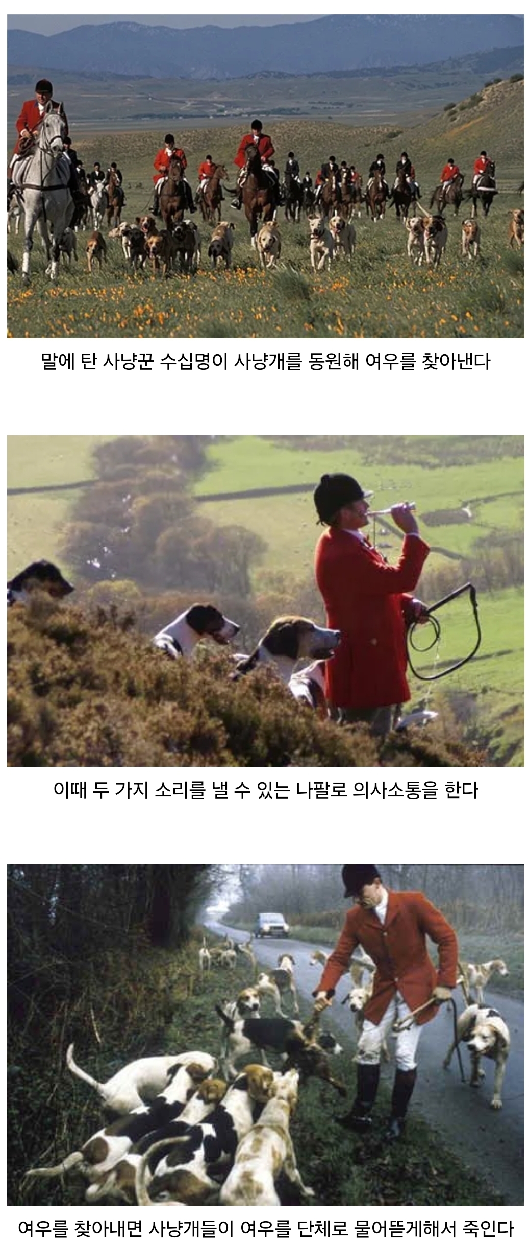 그냥 재미로 죽이는거임 과거에는 가죽과 고기를 얻을 목적으로 사냥했지만 스포츠화 하면서 단순히 여우를 죽이는 재미로 변질된거 | 25.01.17 18:43 | | |