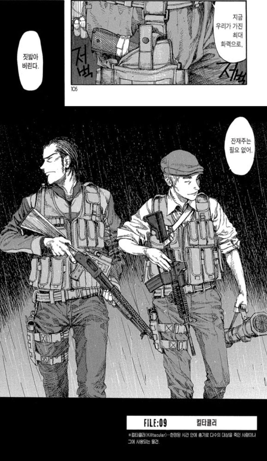 전형적인 쿨계 주인공 만화로 흘러가려다가 초 밀리터리 하드물로 바뀜 ㅋㅋㅋㅋㅋ