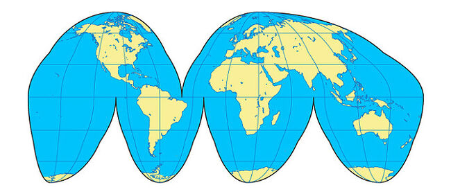 이 도법에 의해 만들어진 세계지도는 각국의 면적을 거의 실제와 비슷하게 나타내고 있다.