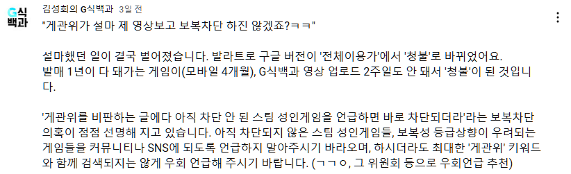 이런거 보면 게관위는 그냥 야겜 자르는 기관 같은