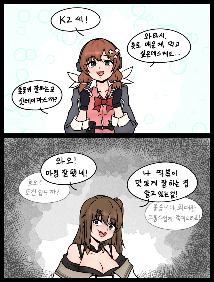 K2 : 여기 엽기떡볶이 매운맛 5단계로 주세요 😌😌 | 25.01.18 19:32 | | |