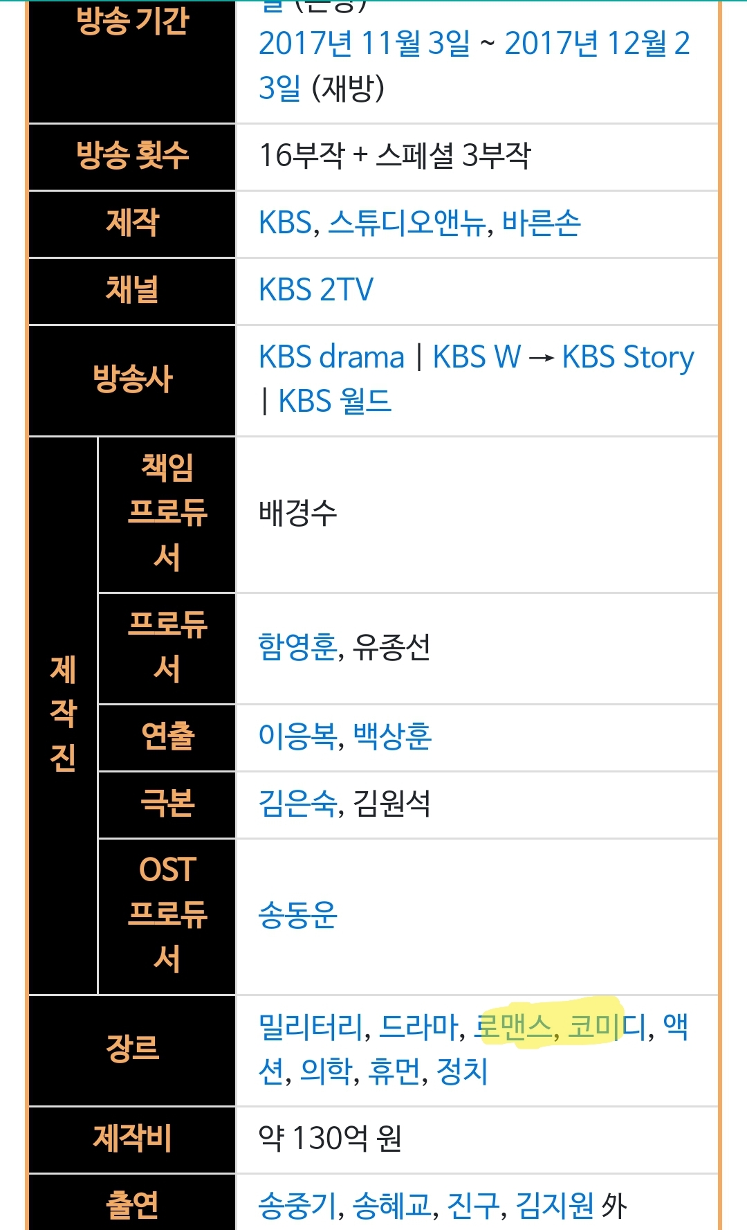 이건 나무위키잖아. 공식사이트가면 휴먼 멜로 드라마 라고 언급되어있음. :)