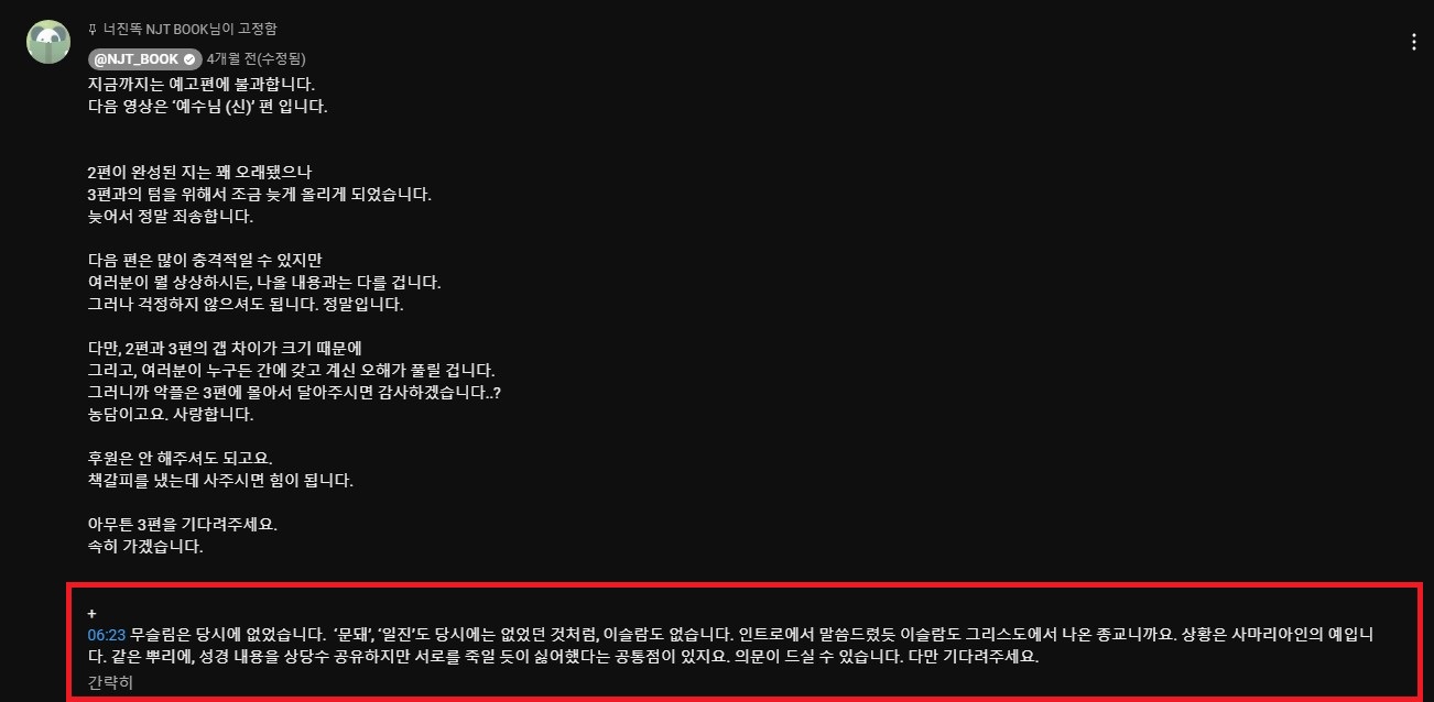 영상 일부분만 가져와서 그렇지 영상 설명에 무슬림은 비유표현이라고 나옴 | 25.01.19 12:42 | | |