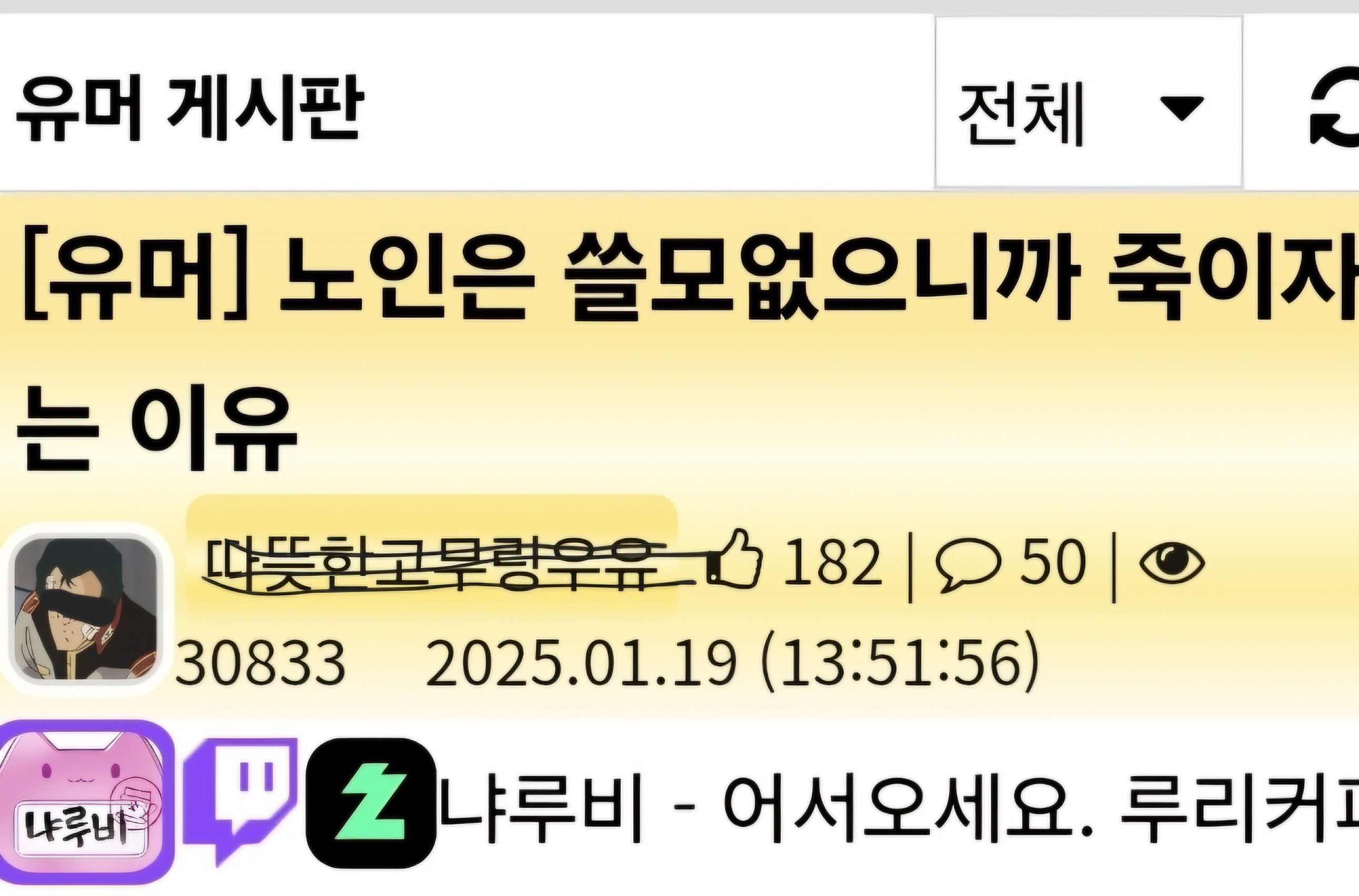 작성자가 아무리 미워도 아이디는 가려 줘야지요... | 25.01.19 18:24 | | |