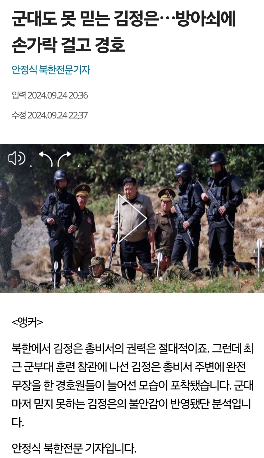 저 경호부대는 같은편도 쏴죽임 신참이 길잃어서 자기담당구역 벗어나서 실수로 다른쪽 보안구역으로 넘어오니까 바로사살햇다는 이야기있음 그리고 김정은 시찰나가서 군간부가 바지내려가서 끌어올라려고 허리춤에 손대니까 권총집에손간다고 바로쏴죽인 이야기도 있고 그냥 조금만 수상하면 바로 발포하게되있고 그러면 칭찬받음 ㅇㅇ | 25.01.19 14:16 | | |