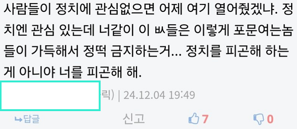차단하니까 더더욱 날뛰는걸지도 몰라 비추 신고 분리수거 안받으니까 | 25.01.19 21:15 | | |