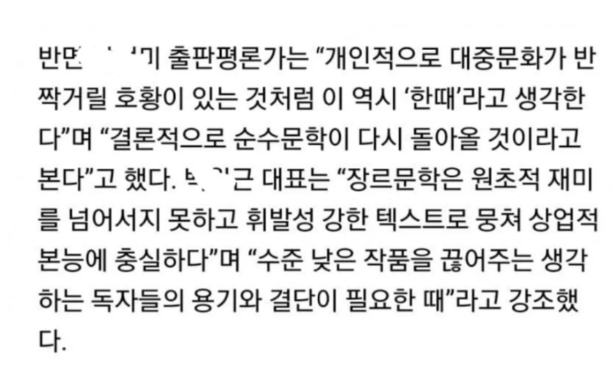 순수문학 논쟁때부터 이어져온 즈언통이지 웹툰 웹소설이라서 무시하는게 아니라, 순수문학이 아니라서 무시하는거 | 25.01.20 20:01 | | |