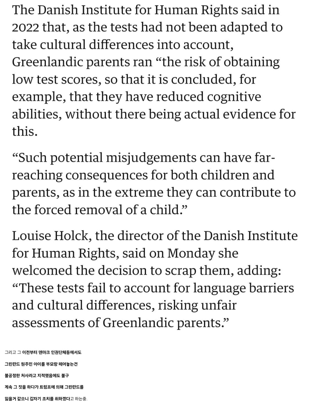 이누이트 부모한테 태어난 애는 부모가 덴마크어를 못하거나 덴마크 테스트 기준 지능지수가 낮으면 강제로 고아원에 넣거나 덴마크 가정에 입양보냄. | 25.01.21 15:21 | | |
