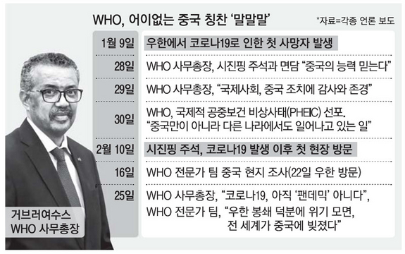 그건 그시절에 정한곳, 사람들한테 가서 따져야하는거고 WHO장탓에만 코로나 판데믹 대응이 늦었다 하기엔 트럼프정부 당시 대응부실논란도 작지않아서 문제라고