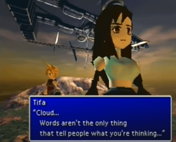 저 비공정 아래에서 다른 멤버들이 보는 가운데 클라우드와 거사를 치름