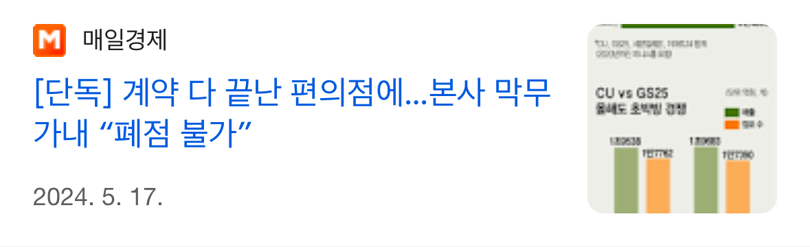 ㅇㅇ 솔직히 경기가 어려운것도 맞은데 우리나라식의 말도 안되는 경쟁이 한몫한다고 봄 편의점이 사거리 길건너 한개씩 있는게 말이 되냐고..ㅋㅋ | 25.01.21 21:15 | | |