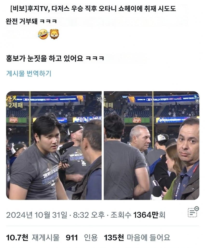 그리고는 우승한 오타니한테가서 취재한다고 저러면 ㅋㅋ.. | 25.01.22 00:03 | | |