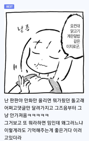 그걸 혼자 생각하는건 상관 없지만 진순 좋아하는 사람한테 가서 '그딴걸 왜 먹냐?'라면서 시비거는건 하지 말라는거. | 25.01.22 22:42 | | |