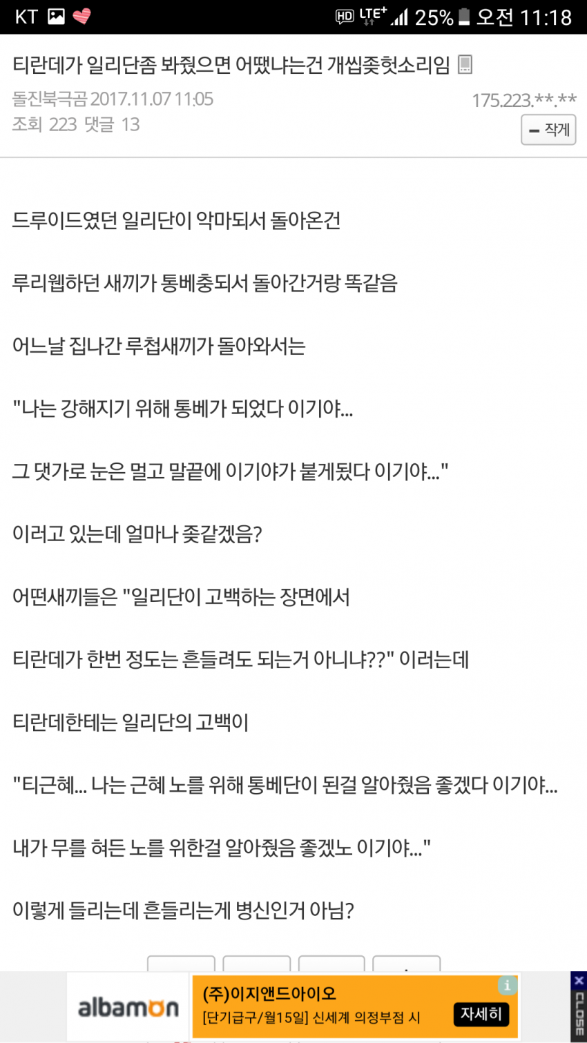 "릴리ㄴ 나는 옳음을 위해 죽먹자가 됐다 이기..." 와 집중 안 되는데? | 25.01.23 13:03 | | |