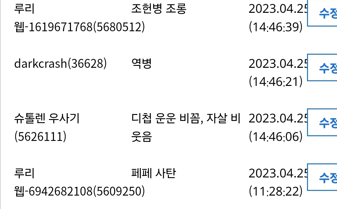 와 잠깐 나도 점마가 그런 짓까지 하고 다닌줄은 몰랐는데;; | 25.01.23 16:00 | | |