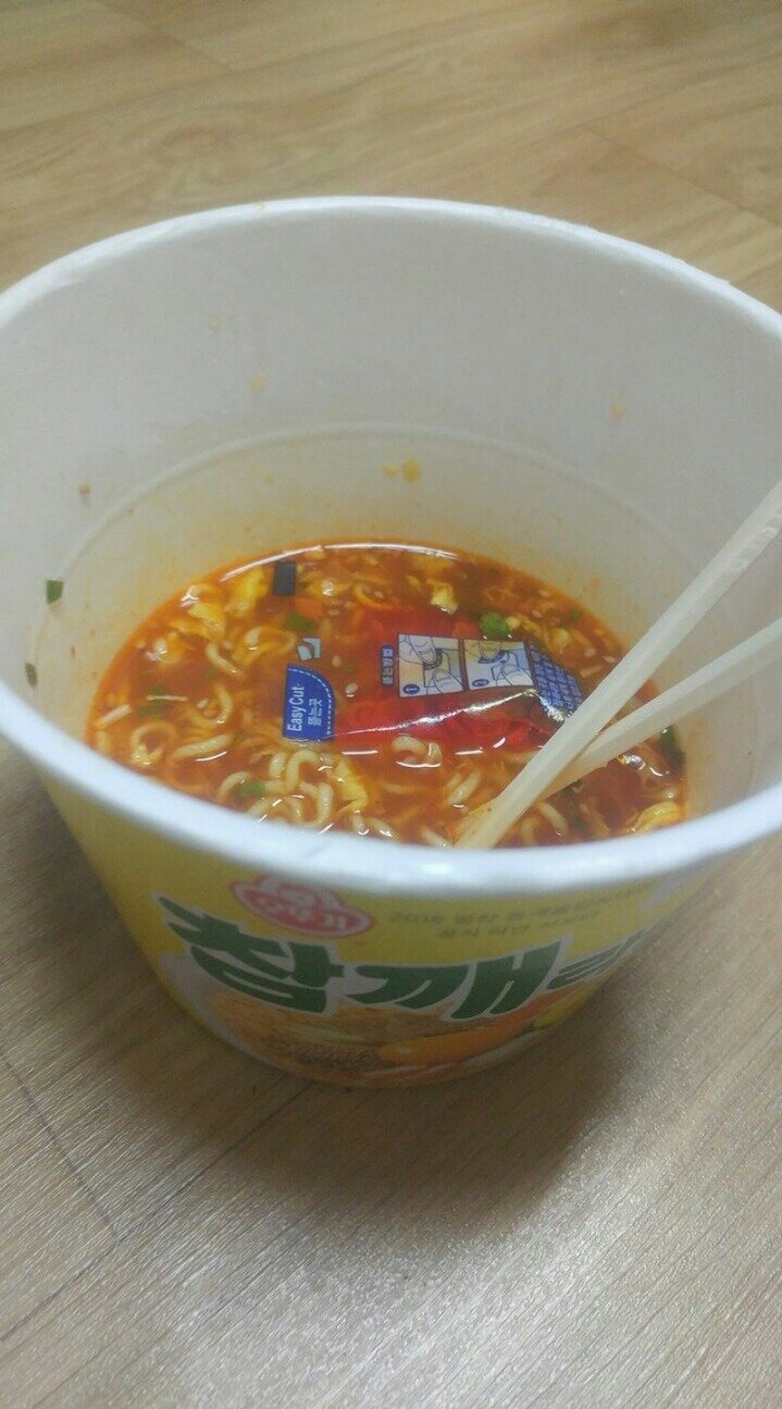 학생때 친구들 끼리 편의점에서 밥 먹으며 고춰끼름이 드가니께 꼬소하이 쳐 즤기네 이지랄 하면서 먹다가 국 물 다 먹고 바닥에서 벌겋게 물든 안뜯은 기름스프 나와서 인간 아닌 취급 받음 흑흑