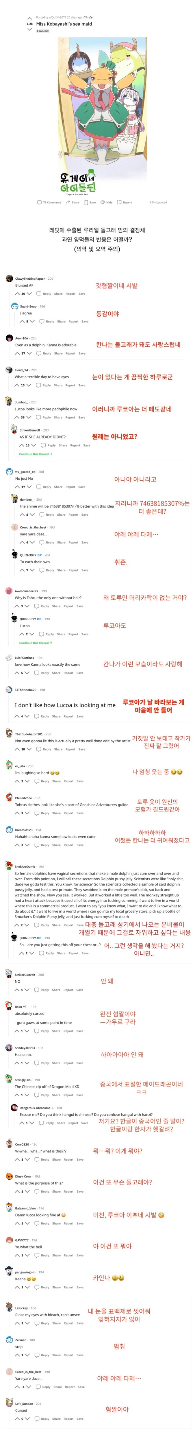 내가 일단 돌고래 ㅈ토피아에 반대한다는걸 먼저 밝히고 감 혹시, 그 인간이 밈 만든 거임? 자연스럽게 동물성기 올리던 애들이 어그로 몰아내니까 거기로 몰린 거고, 그 인간은 그냥 편승했던거 아닌가? | 25.01.27 12:32 | | |