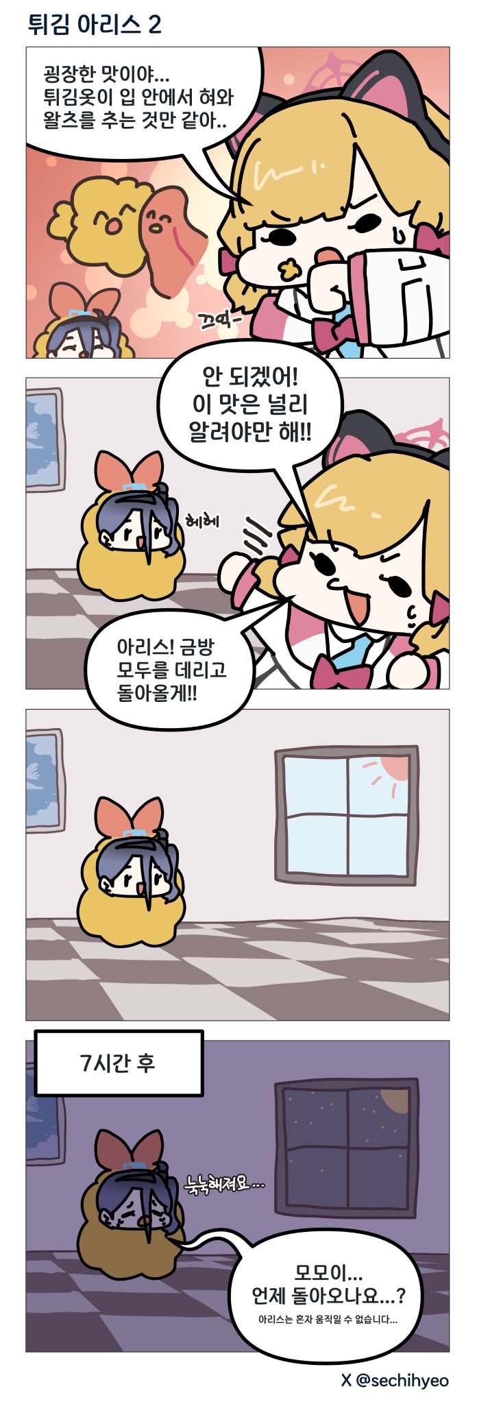 아리스 머리에 들은 돈부리를 와바박