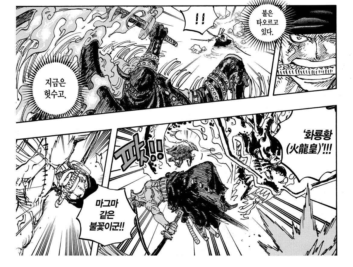 로 밀어주는 억지장면 1위가 도황한테도 몇대 쳐맞고 실신직전까지 가고 실한방에 팔잘리고 리타이어한놈이 빅맘이 무장색 양주먹으로 풀히트하는데도 버티던거 ㅋㅋ