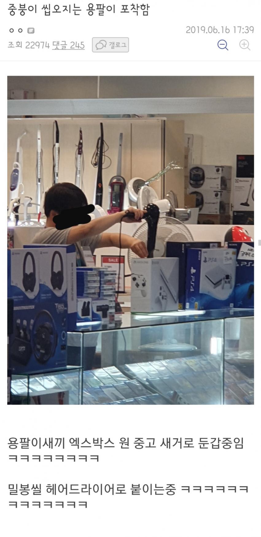 쟤들은 용팔이 씰 드라이기로 말리는 거 욕하면 안되지 않나