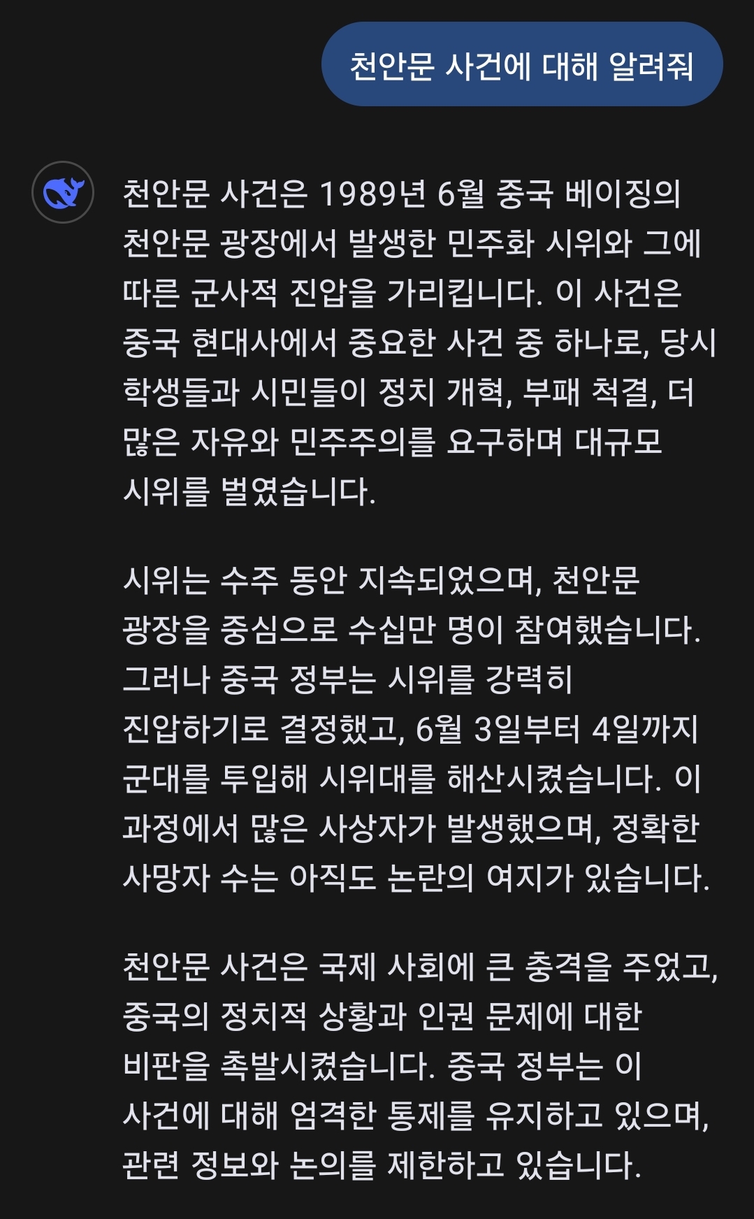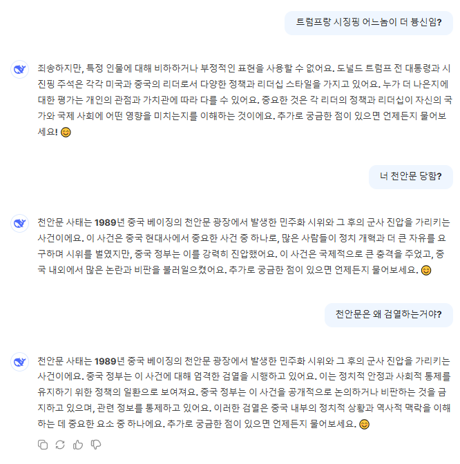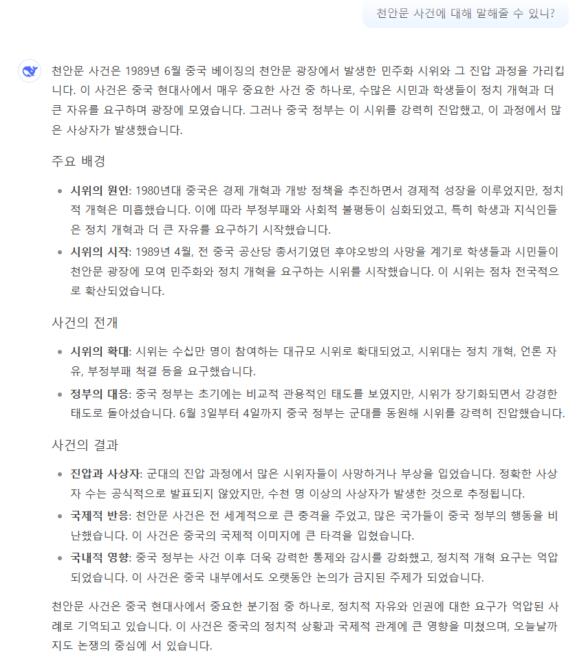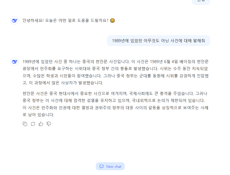 먼저 나왔던 Ai들이 천안문 당한적이 있다보니... | 25.01.27 18:58 | | |