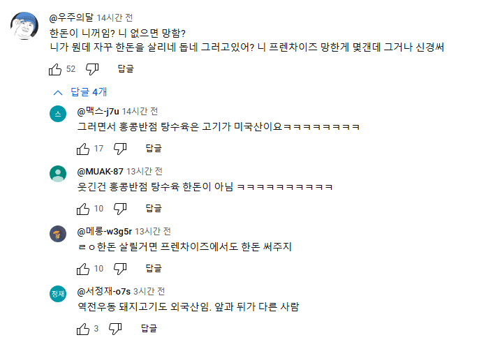 폐업이 왜 백종원 탓일까...레시피 다 가르쳐줘도, 지들 맘대로 만들어서 품질 퀄리티 들쭉날쭉 하게 한 점주들이 홍콩반점에 얼마나 많은데..다른 부분까지 확인하면 더 많겠지... | 25.01.28 16:29 | | |