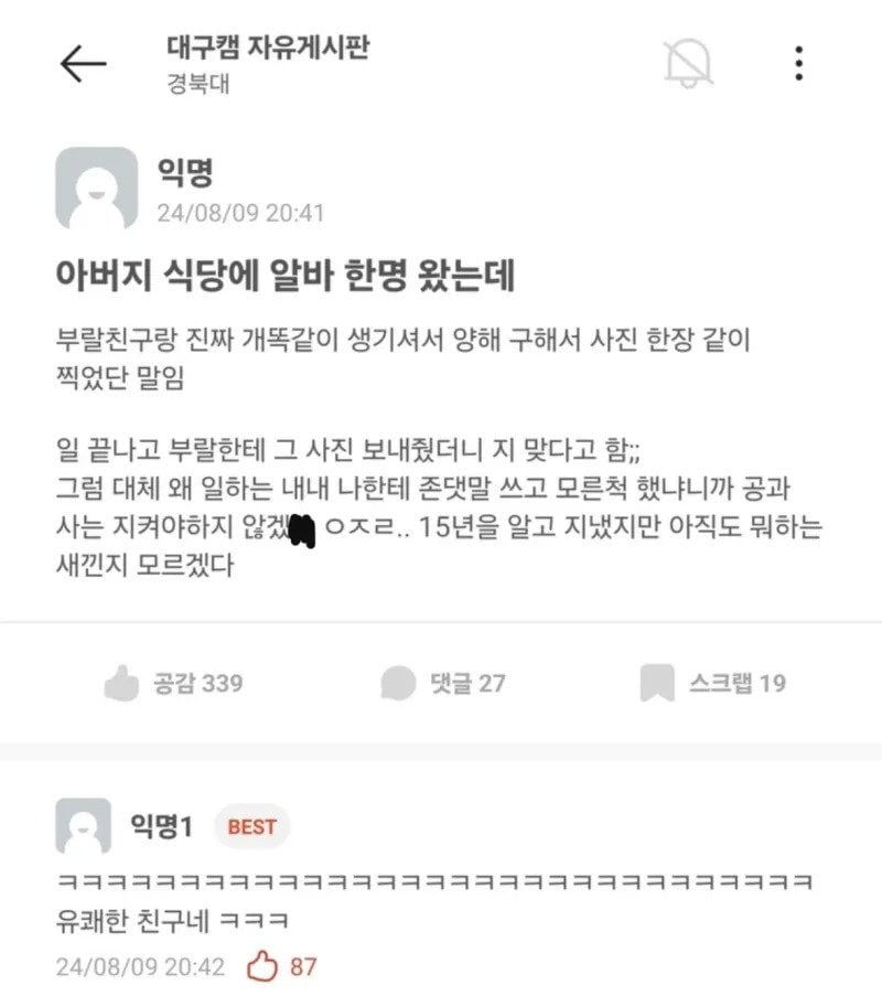 ㅂㄹ친구면 부모님도 알텐뎈ㅋㅋㅋㅋ