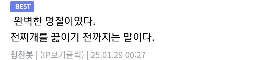 베댓 뺏긴 허접! | 25.01.29 01:28 | | |