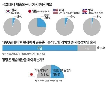 다른 나라도 정치명가가 없는건 아니지만 일본처럼 정치구 세습이 심한 나라는 드물다던가...