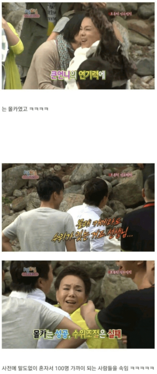 저때 김수미 선생님 나이가 나이인지라 1박2일 역대 몰카중에서 심각도 최상위권 아니었나 | 25.01.29 15:16 | | |
