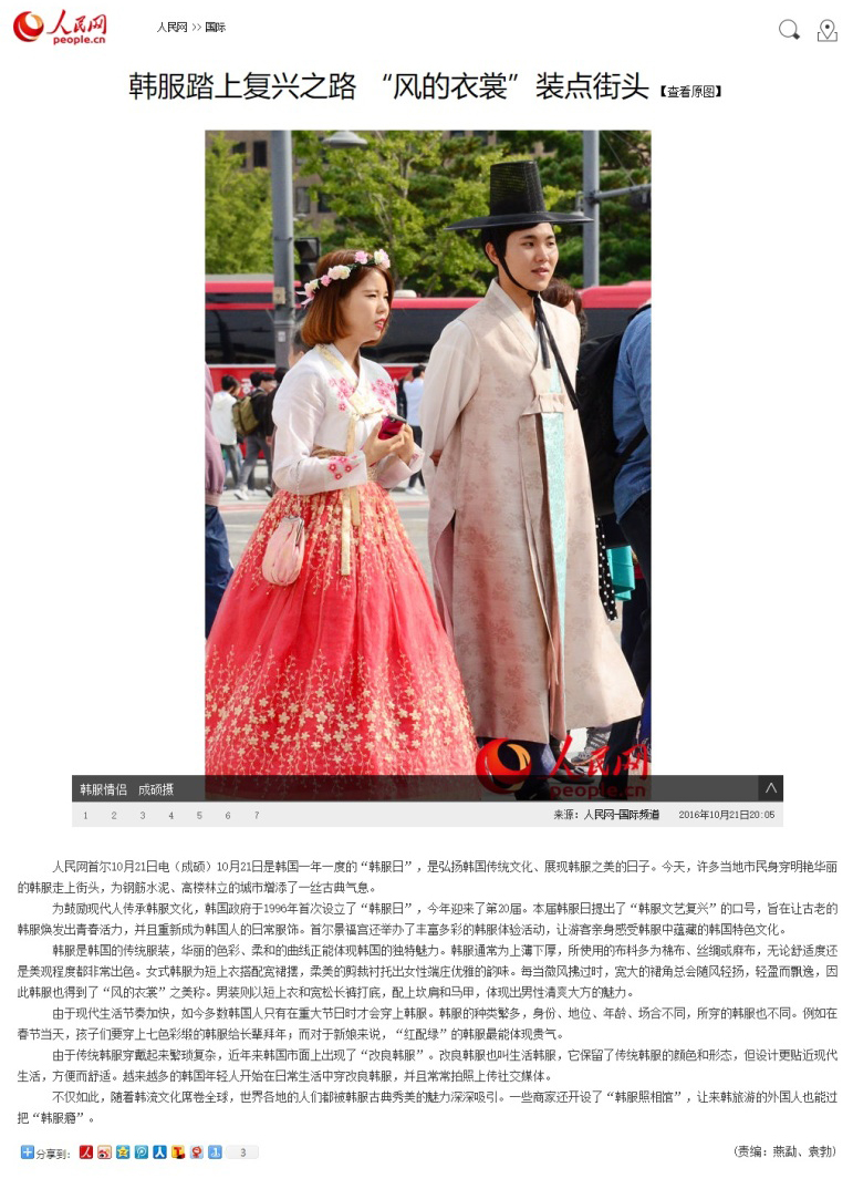 참고로 중국은, 2016년에 무려 공산당 기관지 "인민망" 에서 "한복은 한국 고유의 전통복식 이다." 라고 기사까지 썼었음.