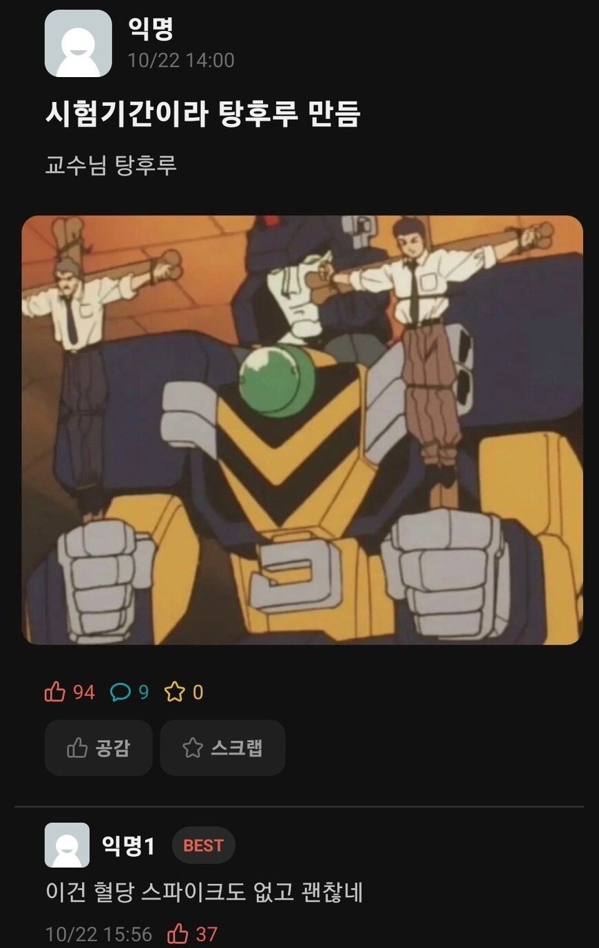 난 이 짤보고 내린 유게이 평이 되게 인상적이었는데 볶음밥도 제대로 못하지만 시간과 예산을 주면 핵무기도 만드는게 교수라고 ㅋㅋㅋ