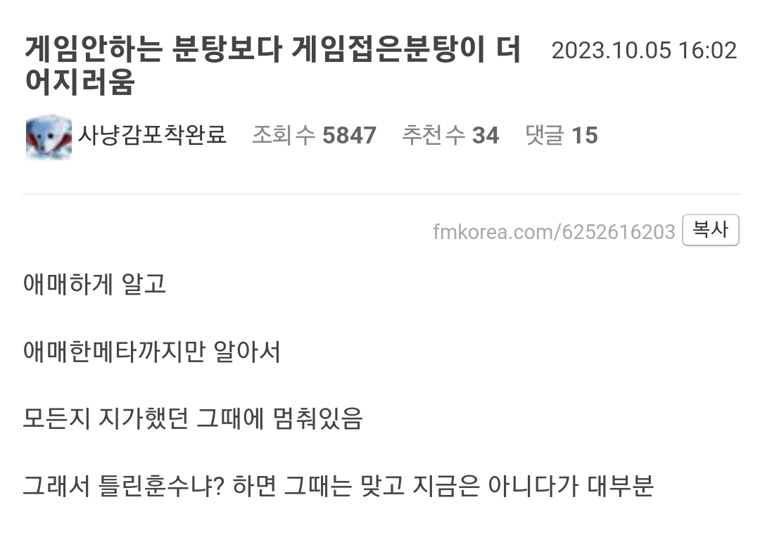 내가 접었으니 이건 똥겜이여야해 하는사람들도 꽤 있음... | 25.01.30 08:38 | | |
