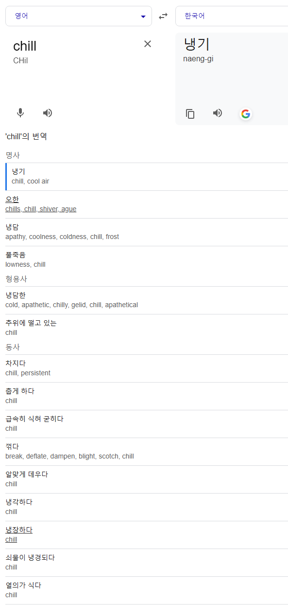 차갑다 냉기의 뜻으로 자주 쓰이는데 느긋한 이라는 뜻도 있음 | 25.01.30 15:39 | | |