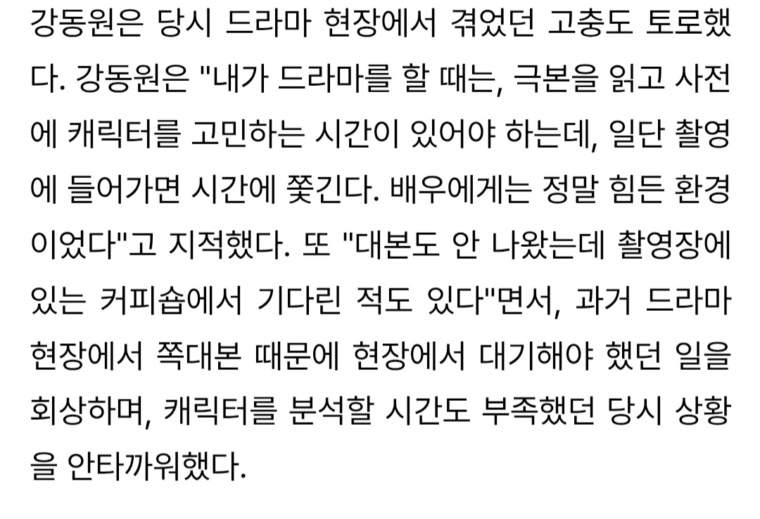ott뿐만 아니라 드라마 시즌제가 정착되고나서 쪽대본이 많이 개선되었죠. 근데 낭만닥터도 시즌제드라마였다는걸 감안한다면 시즌2면 몰라도 1은 여전히 쪽대본식으로 굴러가나봅니다. 그것도 주연급배우인데도 언제나올지몰라 무한대기해야한다는게... 다른 드라마촬영현장은 해외니깐 모르겠는데 국내는 유달리 출연분량이없어도 현장에있는걸 덕으로 여기는 경향이 썌서 더 그런것같아요. | 25.01.30 19:05 | | |