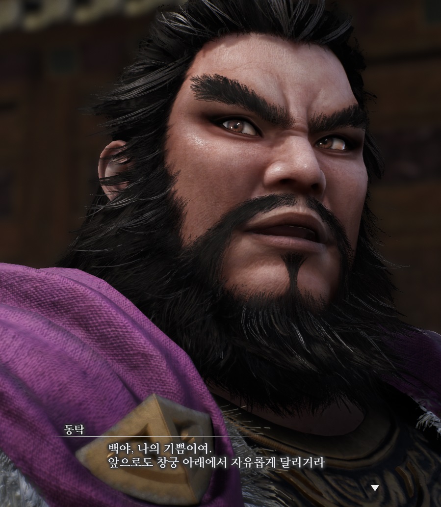 이번 진삼국무쌍 오리진에서 흔히 알려진 탐욕스럽고 멍청한 돼지 같은 이미지와는 달리 약육강식을 주장하는 냉정한 폭군과 같은 모습으로 화제가 되었던 동탁.
