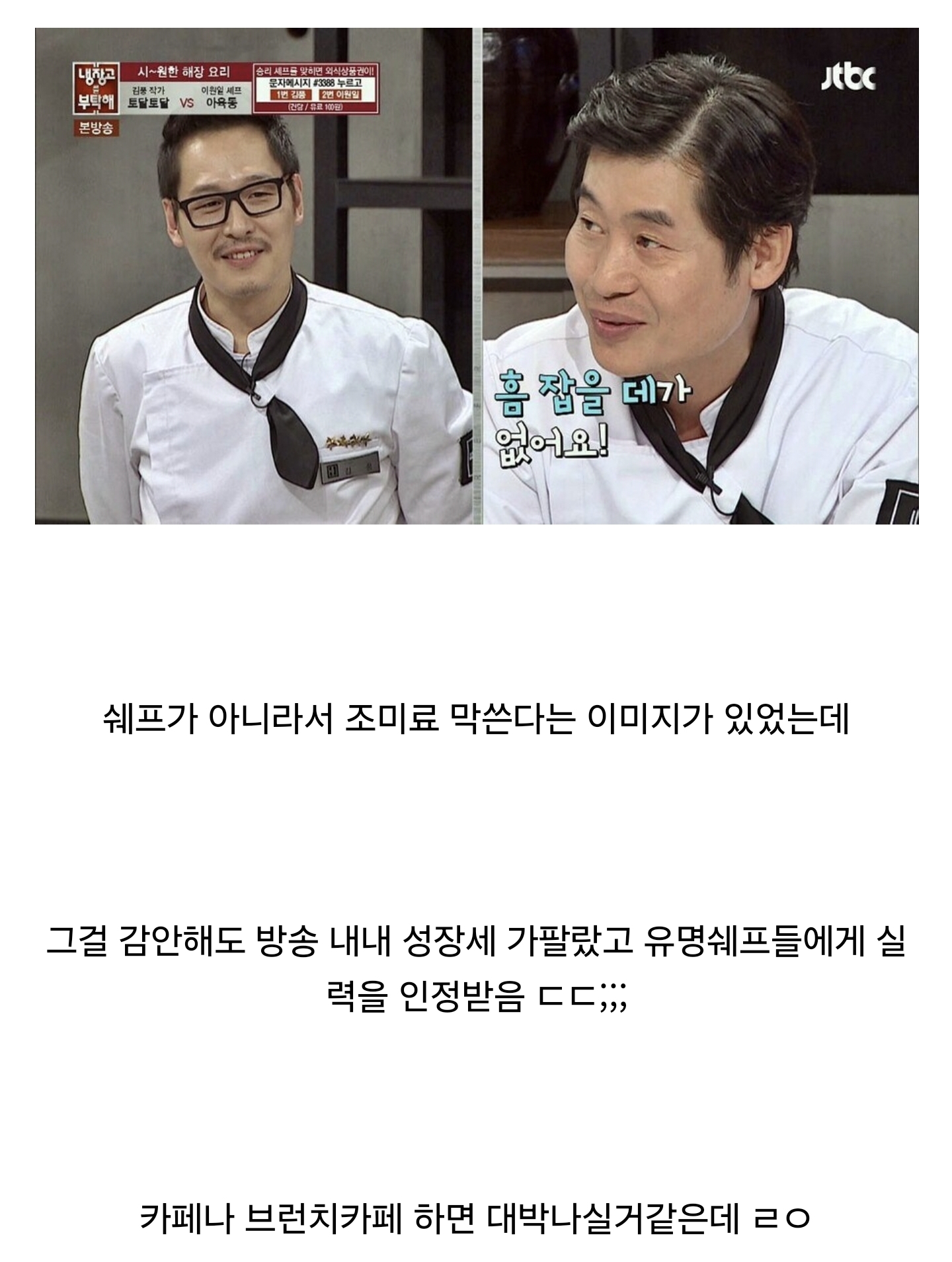 크 요리사도 아닌데 저정도인 사람이 카페 같은거 하면 얼마나 잘될까