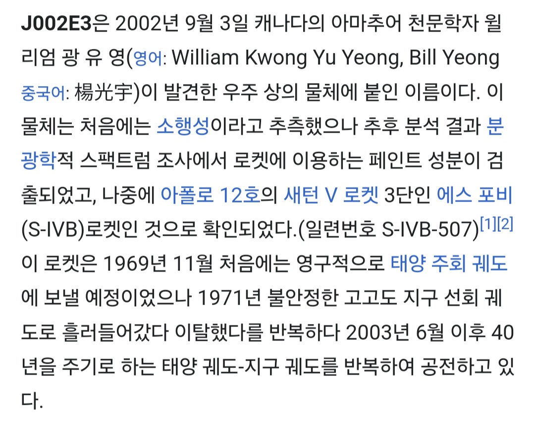 사실 아폴로 12호 분리된 로켓임 그냥 좀 큰 우주 쓰레기