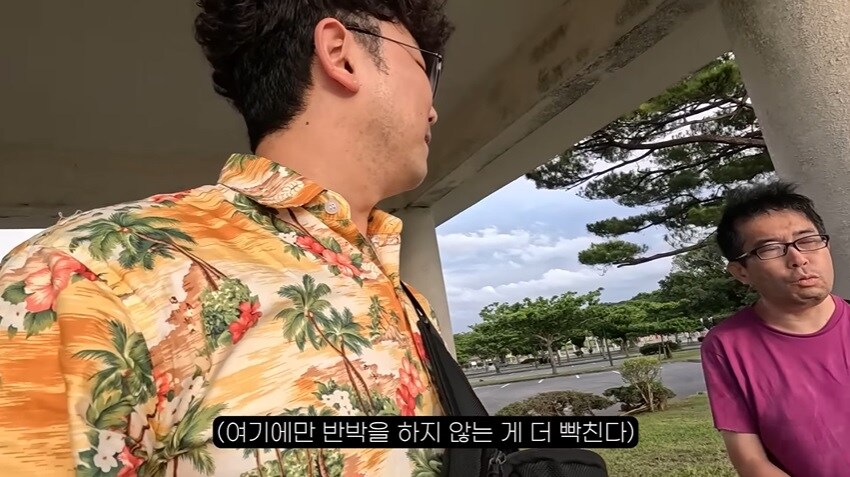 오키나와 평화공원을 돌아보고 나온 유튜버에게 말을 거는 일본 아저씨