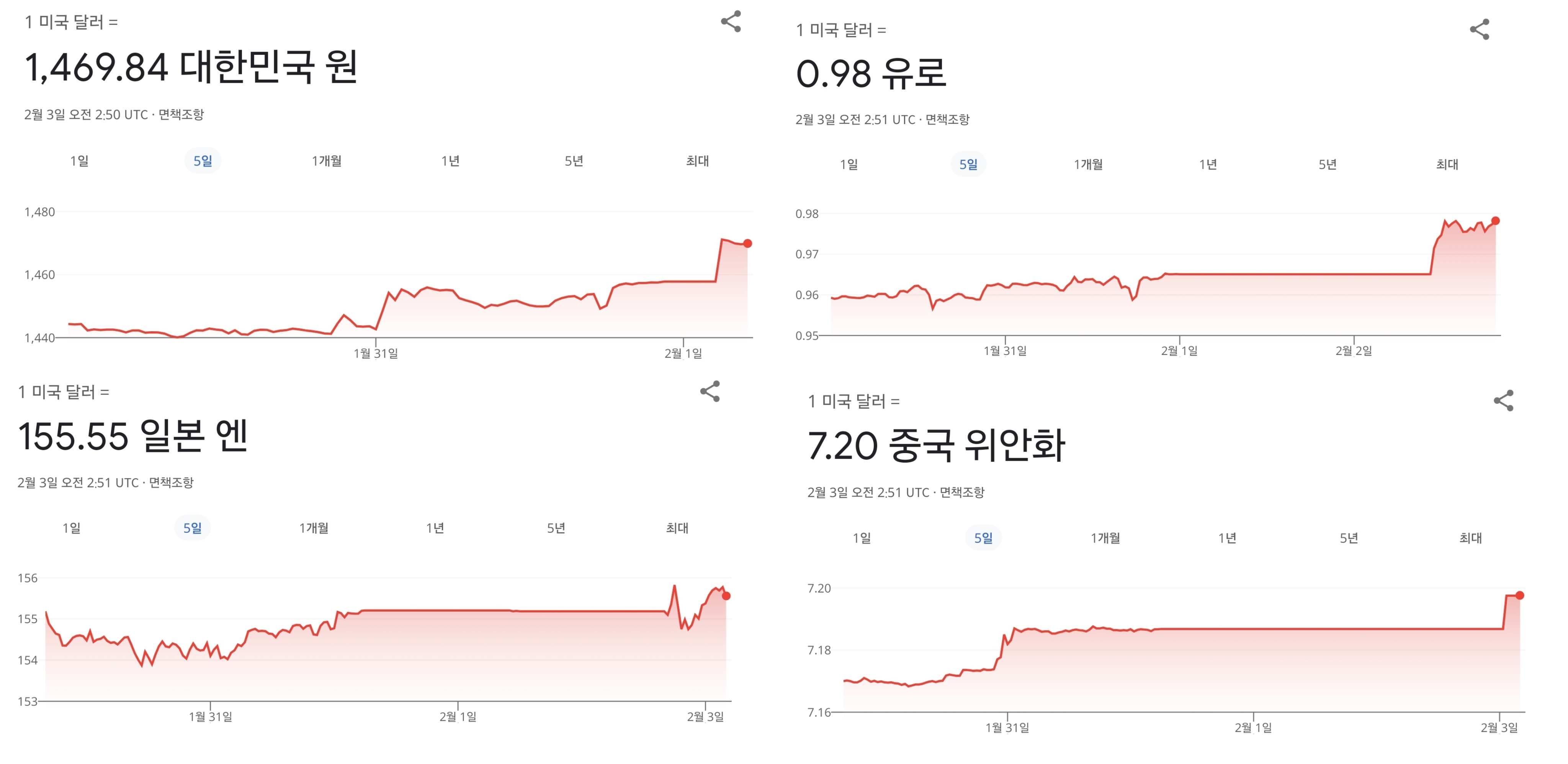 이 시각 주요 국가 달러 환율 상황...