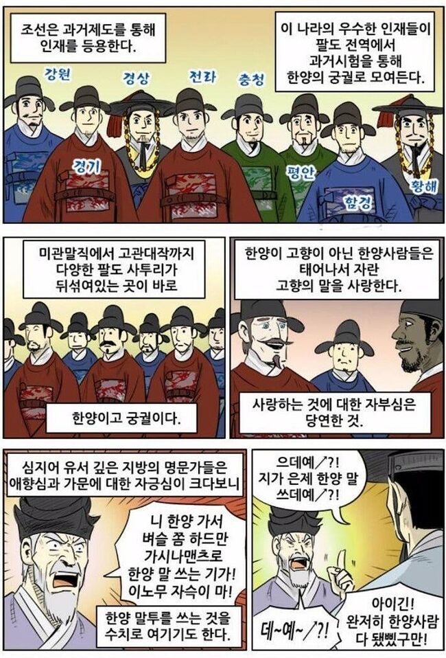 진짜 과거에선 사투리 잘 안 쓰거나 알아 듣는 정도만 씀. 괜히 지방 명문가 유생들이 한양에서 몇 년씩 공부하는게 아님. 사투리 심하면 아예 과거 급제도 힘들었음 | 25.02.03 15:44 | | |