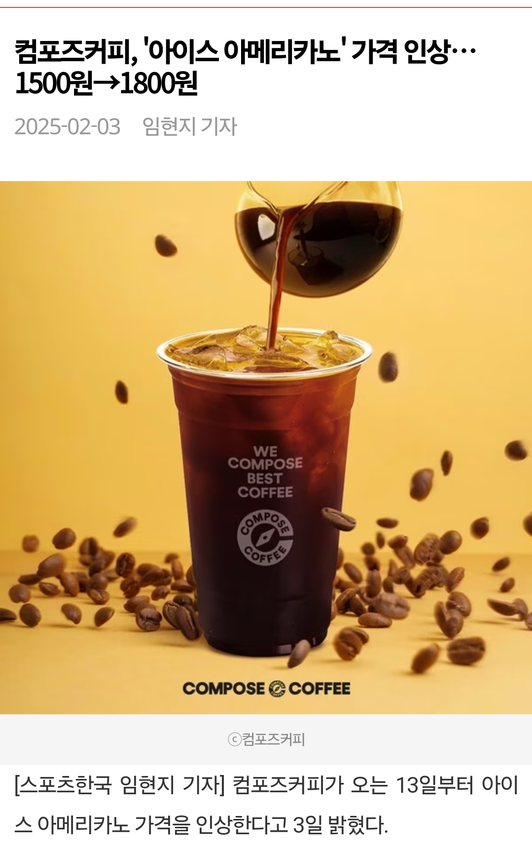 컴포즈 올리면 뭐 메가 커피도 올리고 줄줄이 올리겠네 | 25.02.03 17:09 | | |