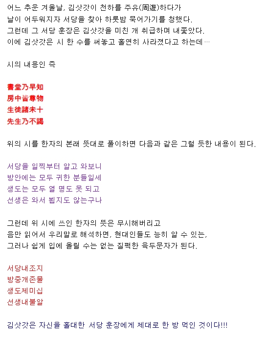 한자발음으로 장난치는거 김삿갓 관련 자료 보면 꽤 자주 나와 | 25.02.03 19:42 | | |
