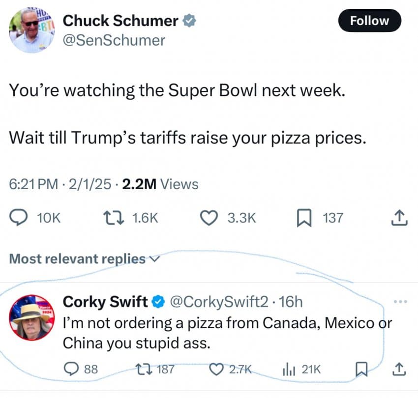 I'm not ordering a pizza from Canada, Mexico or China | 25.02.03 19:39 | | |
